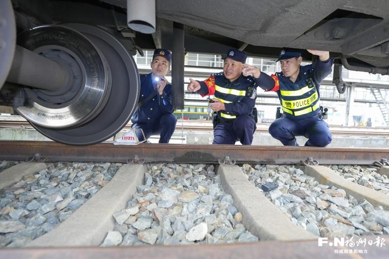 连日来,在位于晋安区的福州车辆段福州客车整备所,福州铁路公安处福州站派出所英模民警杨仁德带领青年民警郑超含,协同车辆段工作人员对客车整备所内部安全开展专项检查,为春运列车打上“平安烙印”。