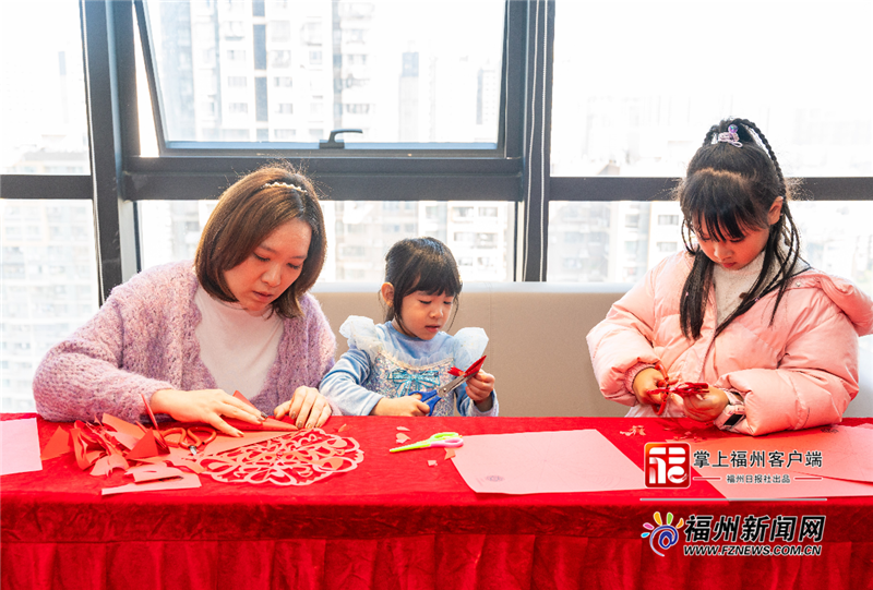 现场,写春联、剪福字等传统民俗体验迅速拉近了榕台青年的距离。大家围坐在桌前,挥毫泼墨书写“福满人间”“两岸同心”等新春寄语,巧手剪出喜鹊登梅、吉祥如意等精美图案。台湾青年吴升桦写下了“同处一片烟火气,共庆一个中国年”的对联,字里行间传递着两岸同胞血脉相连的真挚情感。