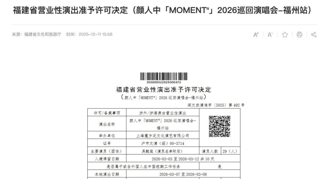 喜欢看演出的朋友看过来!2026年,多场演唱会将在福州举办,快来看看有没有你感兴趣的吧!