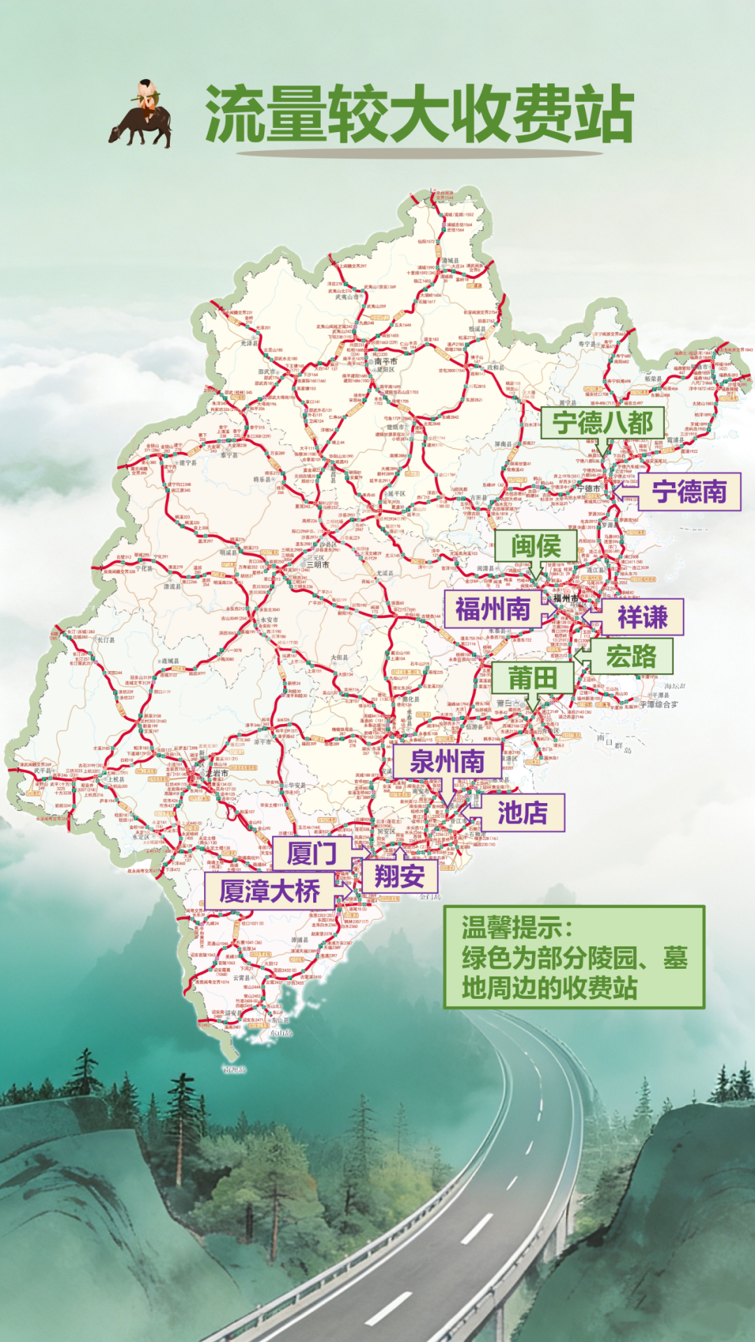 根据大数据研判和近年相关假期历史情况分析,清明期间,预计省内高速公路主要通道的部分路段、服务区以及陵园、墓地周边的收费站,在高峰时段可能会出现短时的车多缓行现象,预计在5处路段、12个收费站、9对服务区车流量将较为集中,3对服务区充电设施利用率较高,建议大家合理规划路线,错时错峰出行。