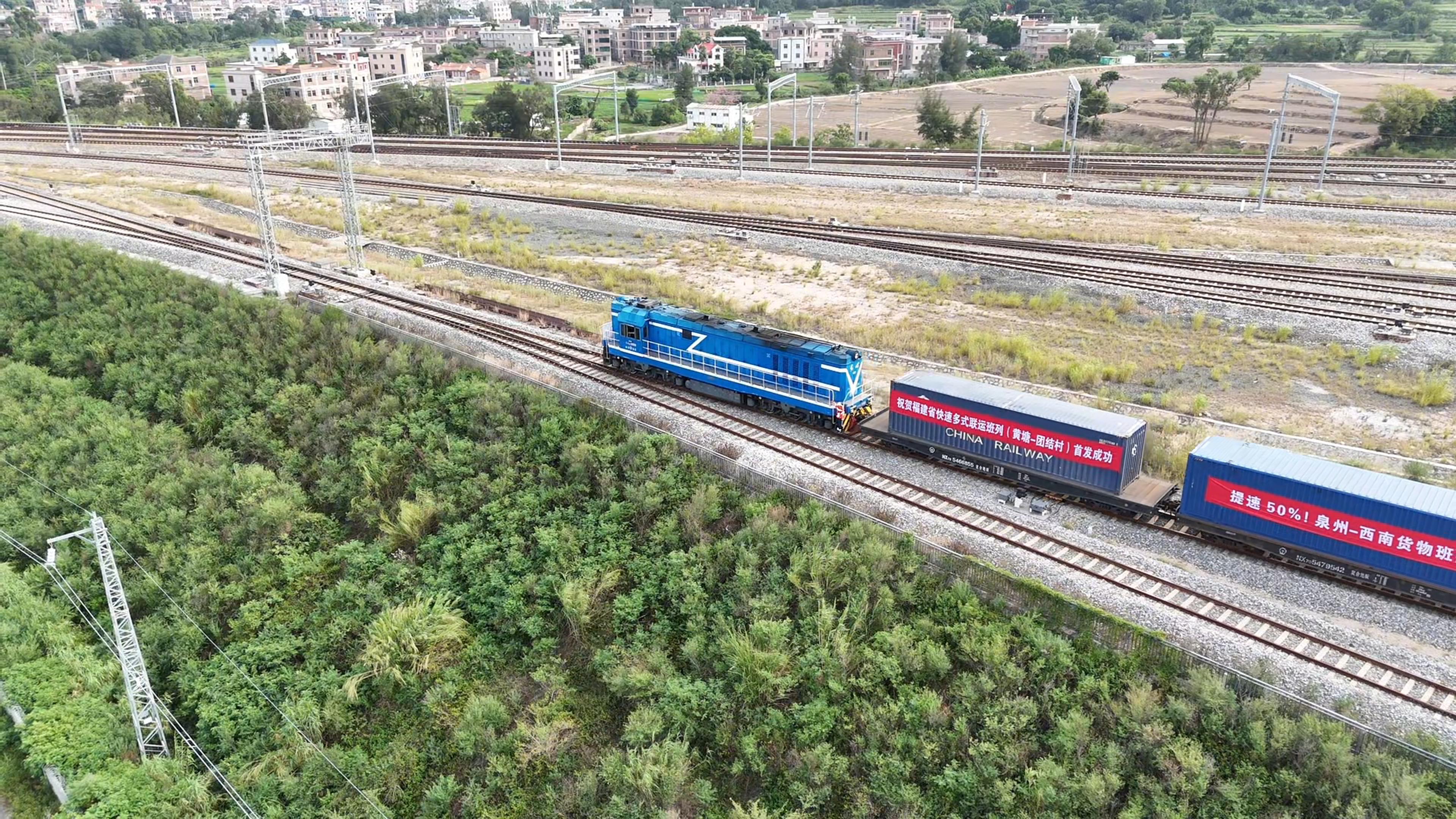 南铁福州铁路物流中心生产调度中心副主任方杰介绍,该快速多式联运班列已纳入铁路运行图,按隔日开行模式实施常态化运输。“班列将成为连接泉州与西南地区的高效物流通道,对促进区域货物流通、提升物流组织效率具有重要意义。”