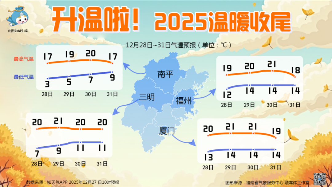 本轮冷空气影响的“至冷时刻”已过,这个周末,气温步入上升通道,未来几天,全省大部午后最高气温都会升至20℃上下,2025年将在温暖中收尾。