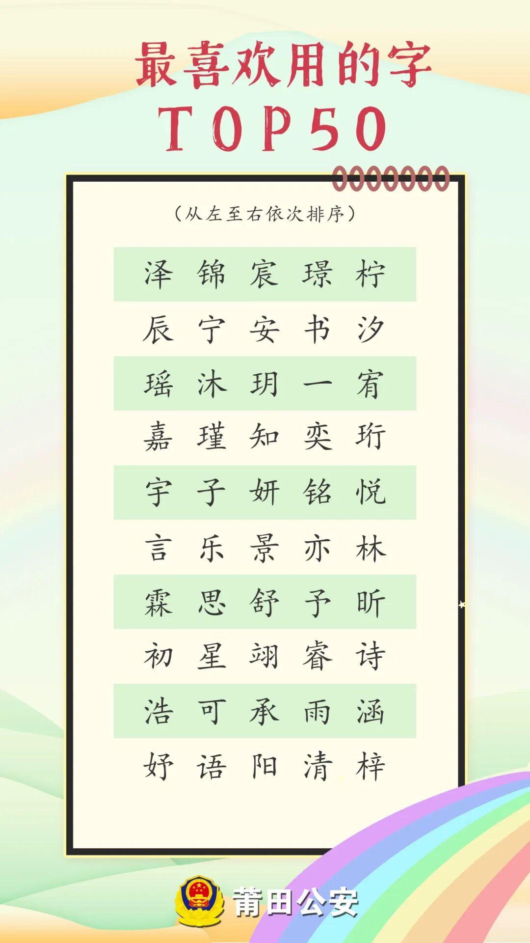 2025年,“泽”字在福州、莆田新生儿名字中,使用频率最高。
