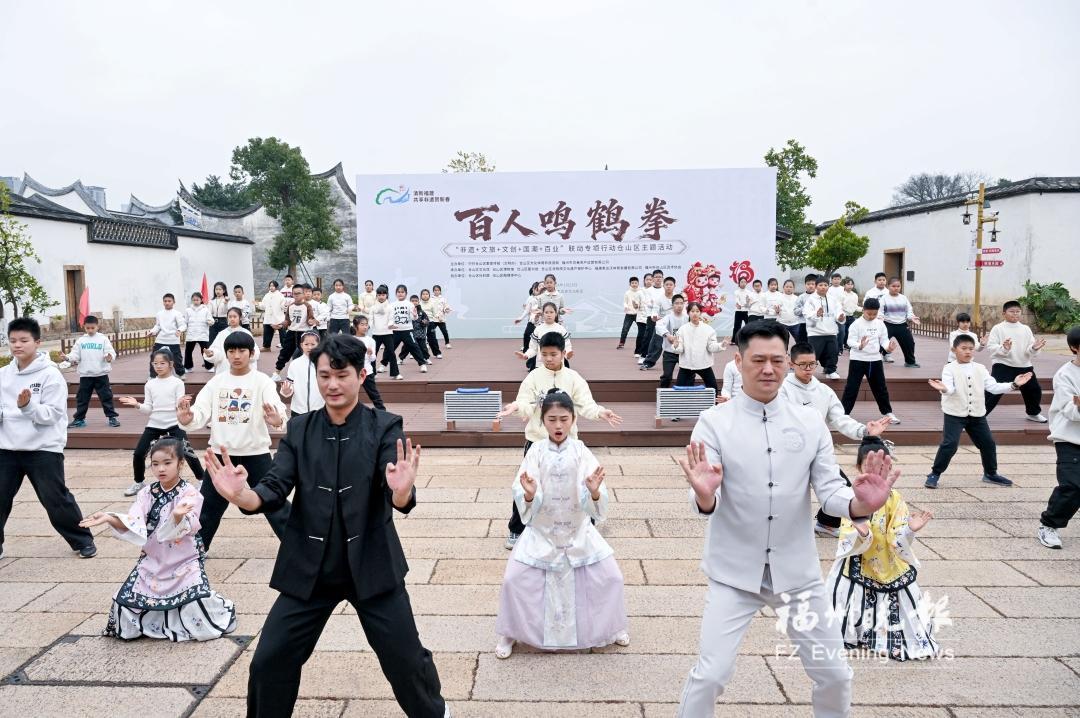 25日上午,梁厝特色历史文化街区的古厝群间拳风乍起、喊声震天,“清新福建 共享非遗贺新春——‘百人鸣鹤拳’非遗体验活动”在此热闹启幕。作为仓山区“非遗+文旅+文创+国潮+百业”联动专项行动百人系列主题活动的第二场,百名武术爱好者齐聚一堂,为新春仓山的非遗传承热潮再添一把火。