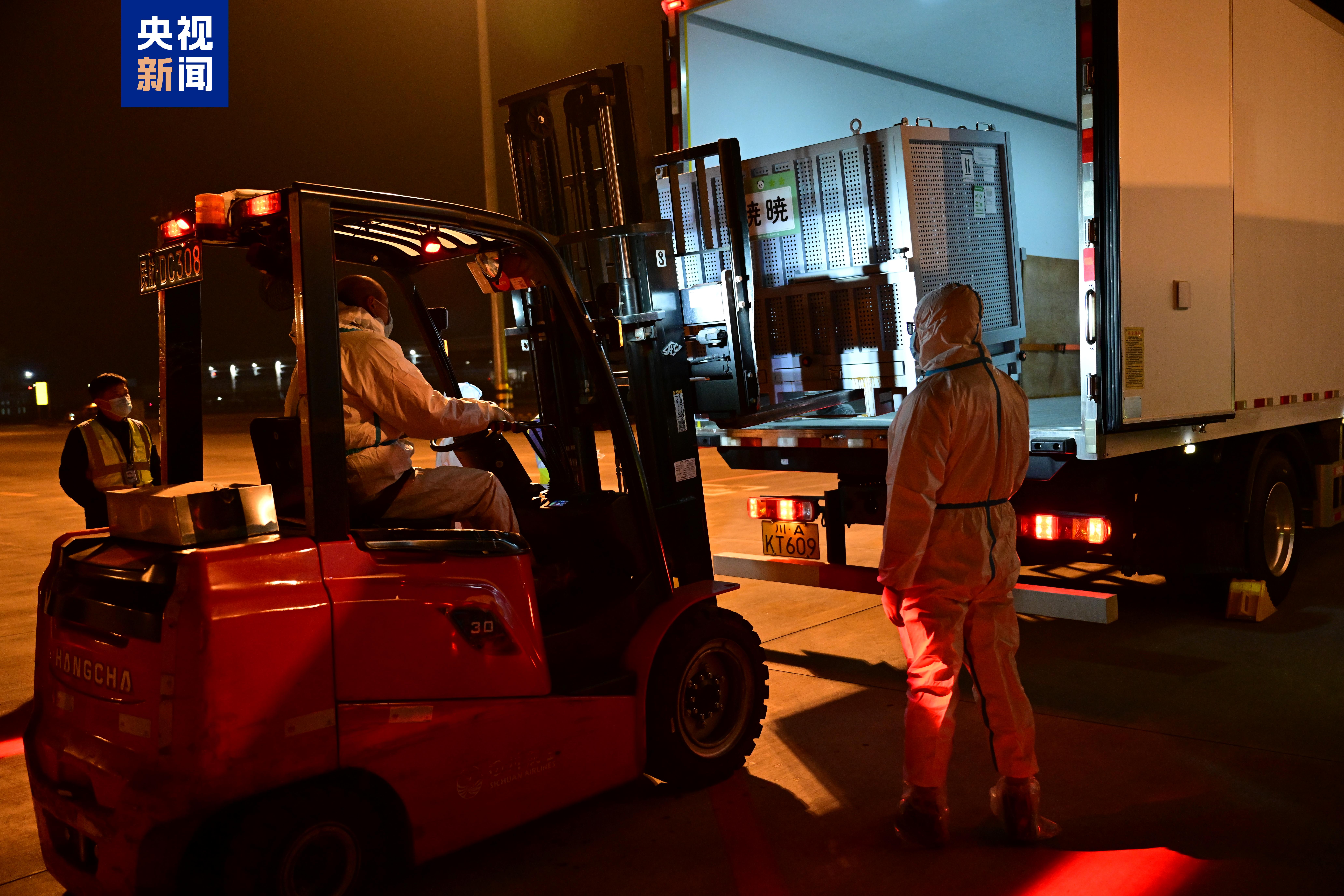 ▽旅日大熊猫“晓晓”“蕾蕾”抵达成都