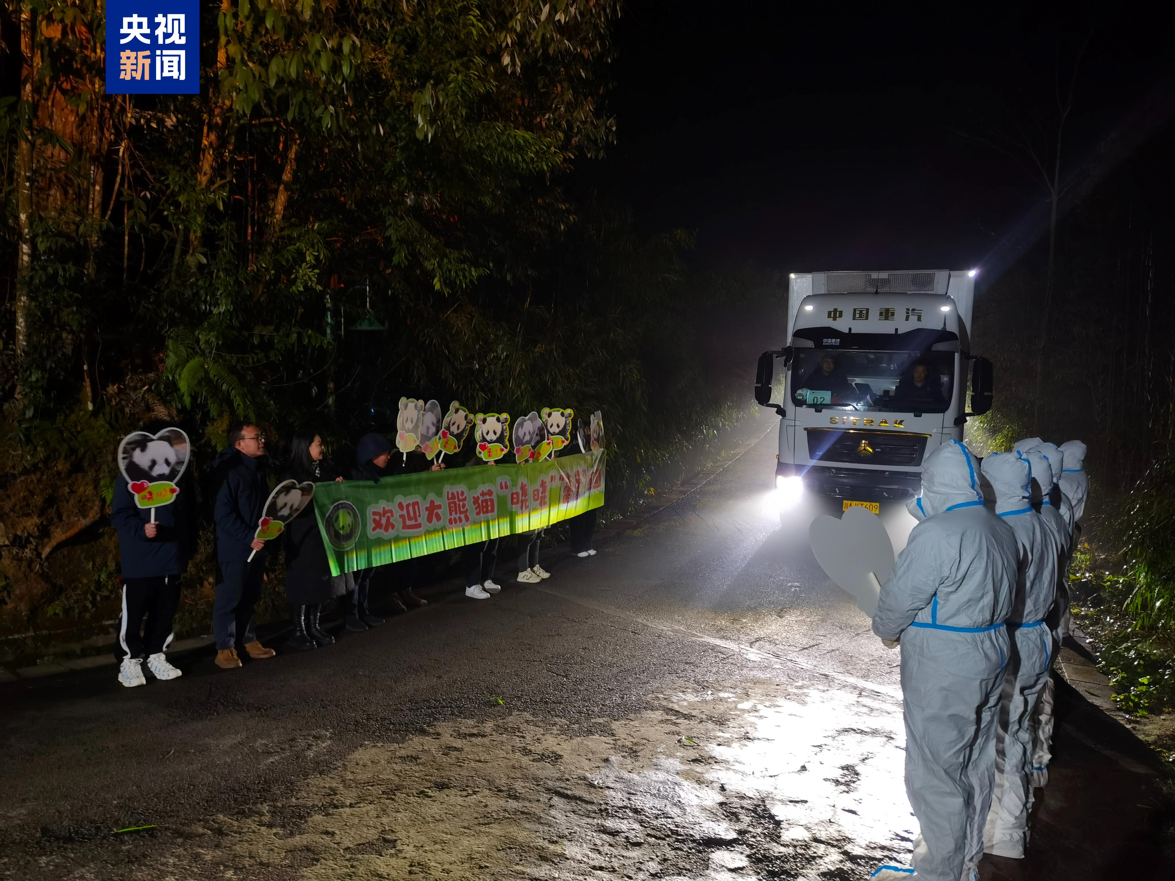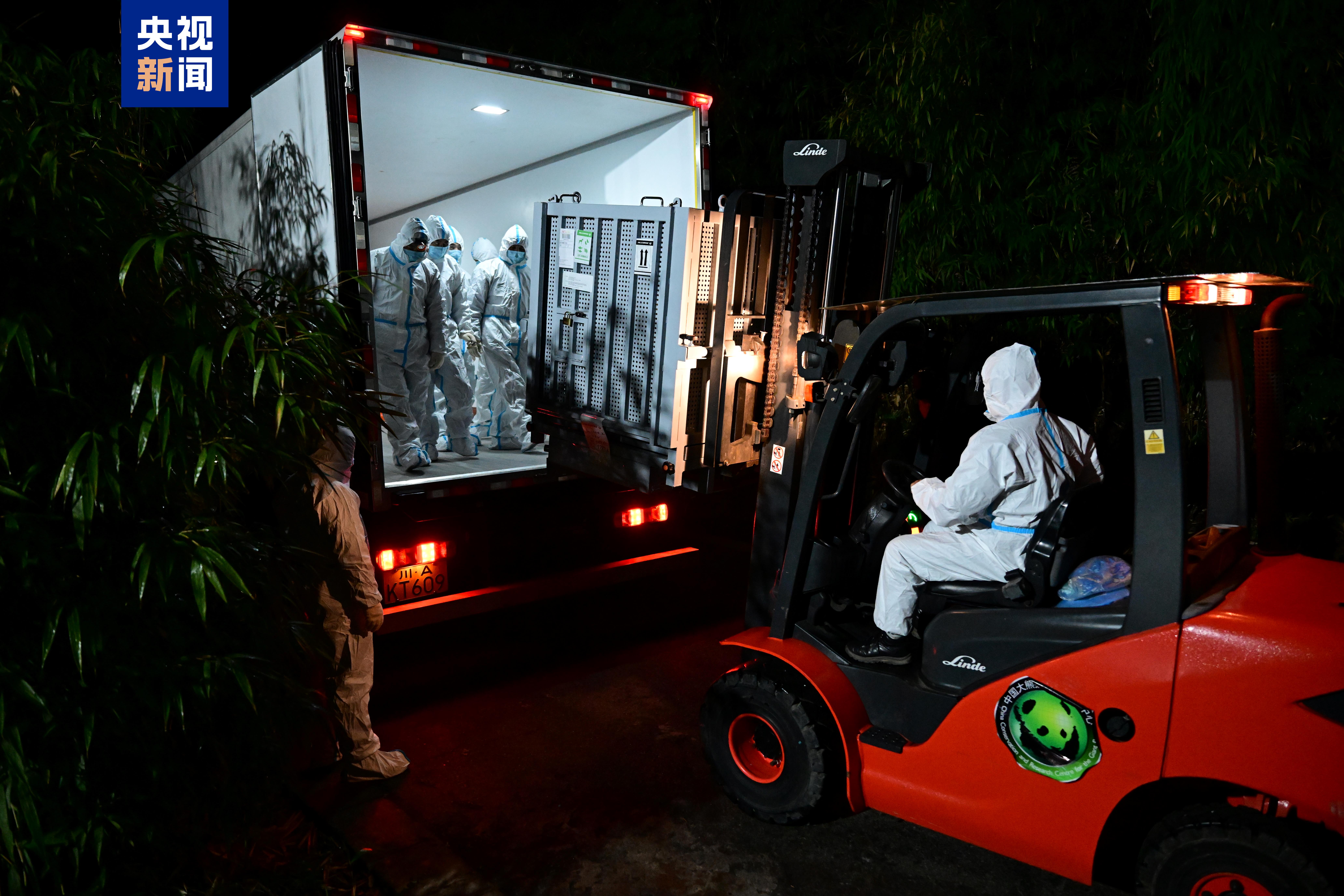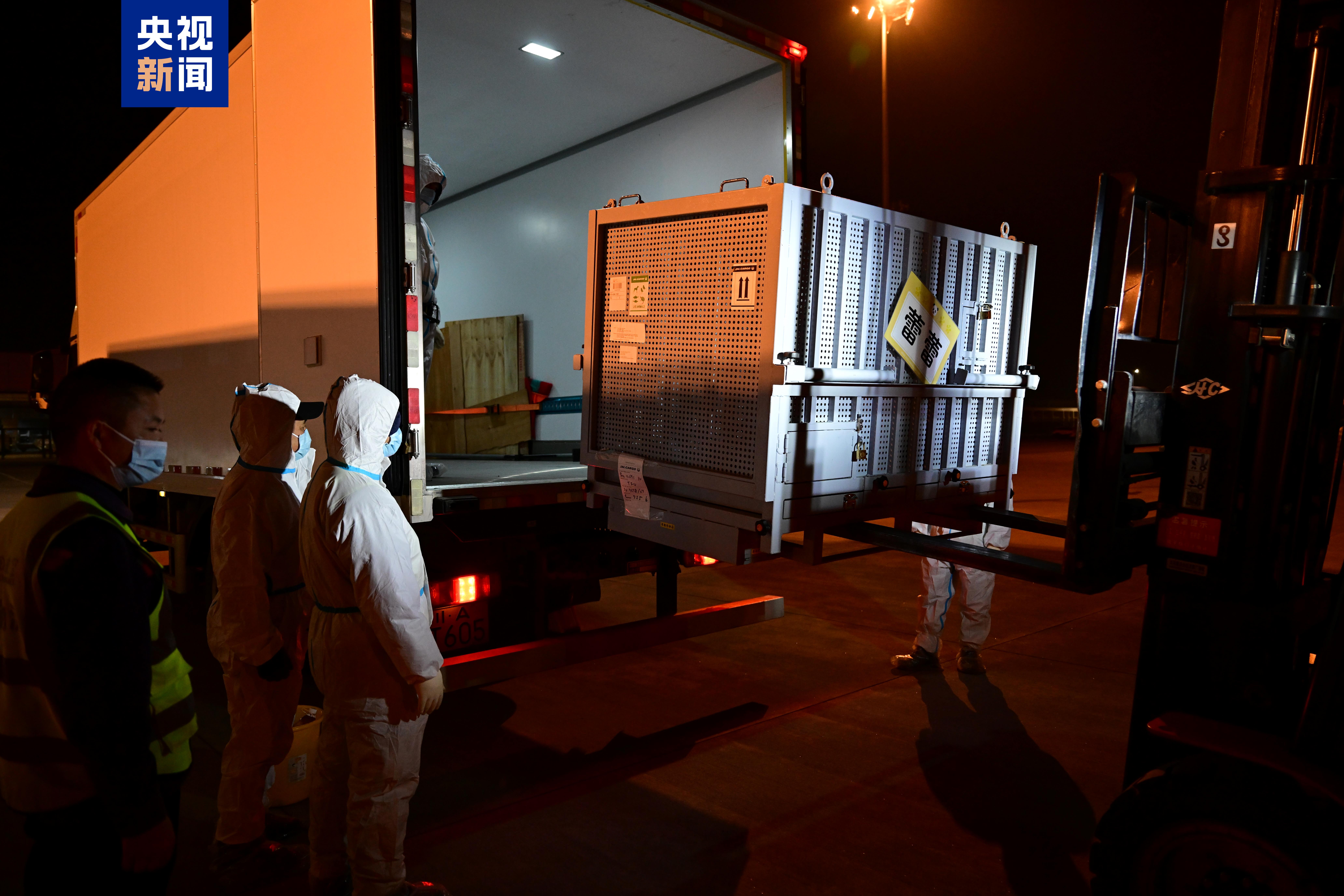 ▽旅日大熊猫“晓晓”“蕾蕾”装运上车