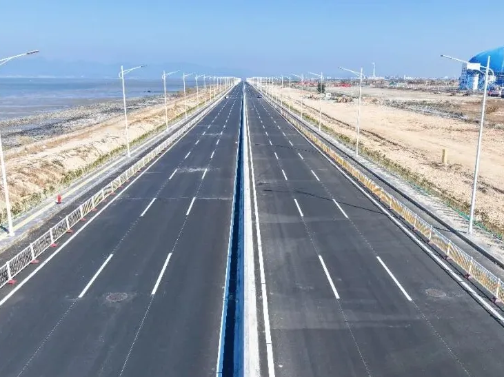 该工程总长约3.7公里,按一级公路标准建设,设计时速60公里,路基宽34米,采用双向六车道布局,涵盖路基、路面、综合管线、交安设施及照明等多项核心工程。古雷开发区西侧疏港大道一期工程陆域段的全线建成为推动西侧疏港大道后续建设奠定了良好基础,也为古雷石化园区交通发展注入了强劲动能。