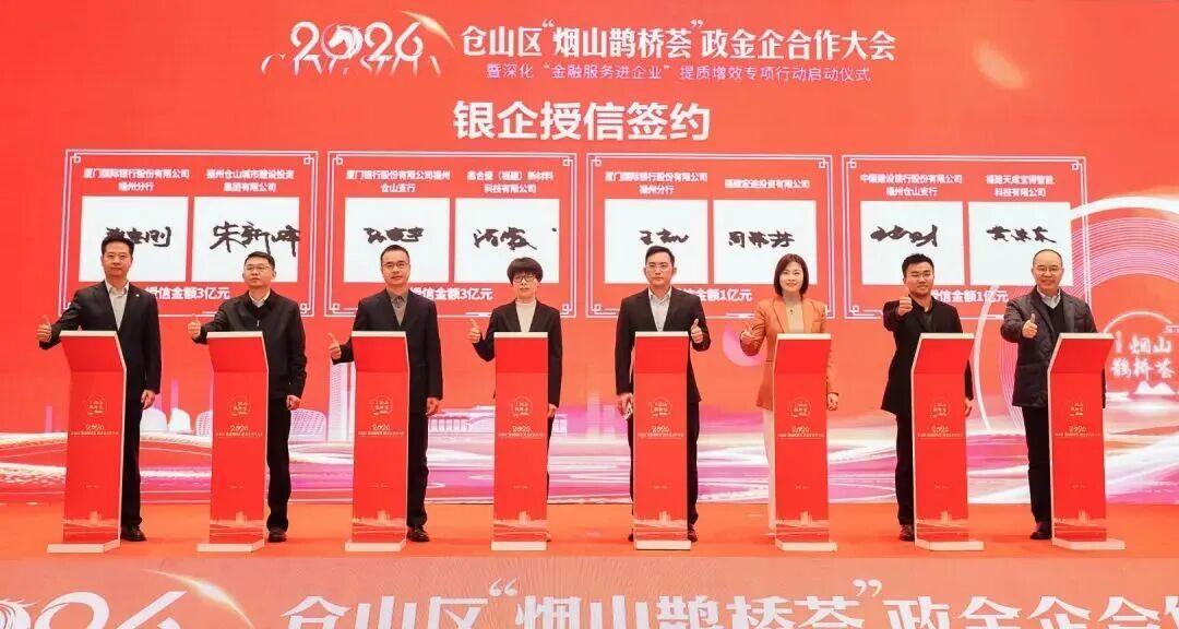 银企授信签约仪式上,厦门国际银行、建设银行、农业银行等多家金融机构与福州仓山城市建设投资集团、福建天成宝得智能科技有限公司等12家企业达成授信合作,总金额超11亿元。此外,活动还对2025年度在支持小微企业融资协调机制推进工作中作出突出贡献的农业银行仓山支行、福州农商银行仓山支行等5家银行机构进行授牌。