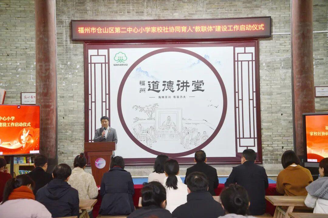 活动伊始,福州市仓山区第二中心小学书记、校长郑学霓发表欢迎致辞。他向与会嘉宾表示诚挚问候,并阐述了“教联体”建设的初衷与使命。郑学霓指出,学校将积极发挥“主阵地”与“连接器”双重作用——对内通过“强师赋能”“课程提质”夯实育人基础,让课堂成为启迪智慧的重要场所;对外则广泛链接家庭、社区及社会资源,构建“家校社共育生态圈”,努力实现“1+1+1>3”的协同效应。