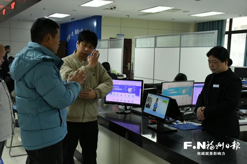 “您好,请问需要办理什么业务?”在闽清县政务服务中心的办事窗口前,听障人士陈先生面对工作人员的询问,不慌不忙地对着面前一台平板设备打起手语。几秒钟后,设备传出清晰的语音,同时屏幕上显示出相应的文字:“我想办理残疾证换新。”