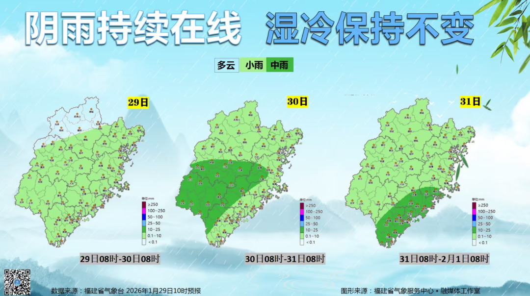 未来三天,福建阴雨天气持续在线,湿冷天气保持不变