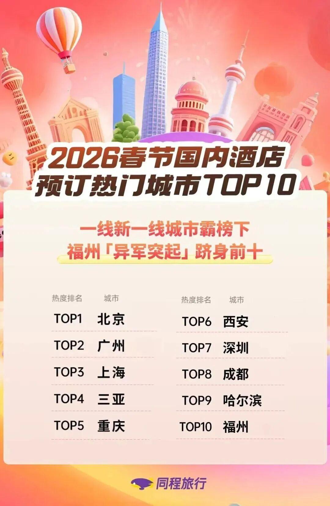 春节前后,全省将以“来清新福建 过闽式福年”为主题,推出1500多场活动、120多项优惠措施。根据同程旅行发布的《2026年春节旅行趋势报告》显示,福建位列春节热门“年味目的地”前三。福州、泉州、厦门旅游持续火热。福州、厦门春节假期旅游订票订单同比分别增长182%、96%,泉州酒店预订量翻倍增长,厦门核心景区预订呈现“一票难求”态势。学生和55岁以上银发群体成为出行主力。学生群体的机票预订量同比增长近30%,春节来闽55岁以上银发群体占比达38%。携程租车数据显示,福州、厦门、泉州针对老年群体的“舒适型轿车”预订量同比增长58%。